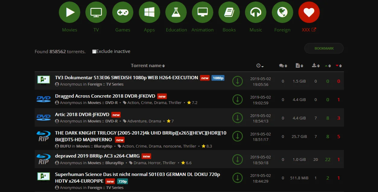TORRENTLEECH.ORG – Является одним из лучших торрент трекеров в категории «всё в одном». Этот ресурс существует уже 13 лет, поэтому хорошо известен в мире. На трекере представлено боллее 850 000 торрентов. Здесь вы найдёте - Фильмы, Телешоу, Сериалы, Игры, Книги, Программы, Музыку итд. Благодаря недавно введённой на трекере бонусной системы, поддерживать рейтинг стало намного легче.