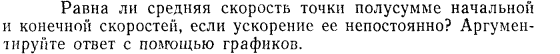 Равна ли средняя скорость точки полусумме начальной и конечной скоростей, если ускорение ее непостоянно? Аргументируйте ответ с помощью графиков.