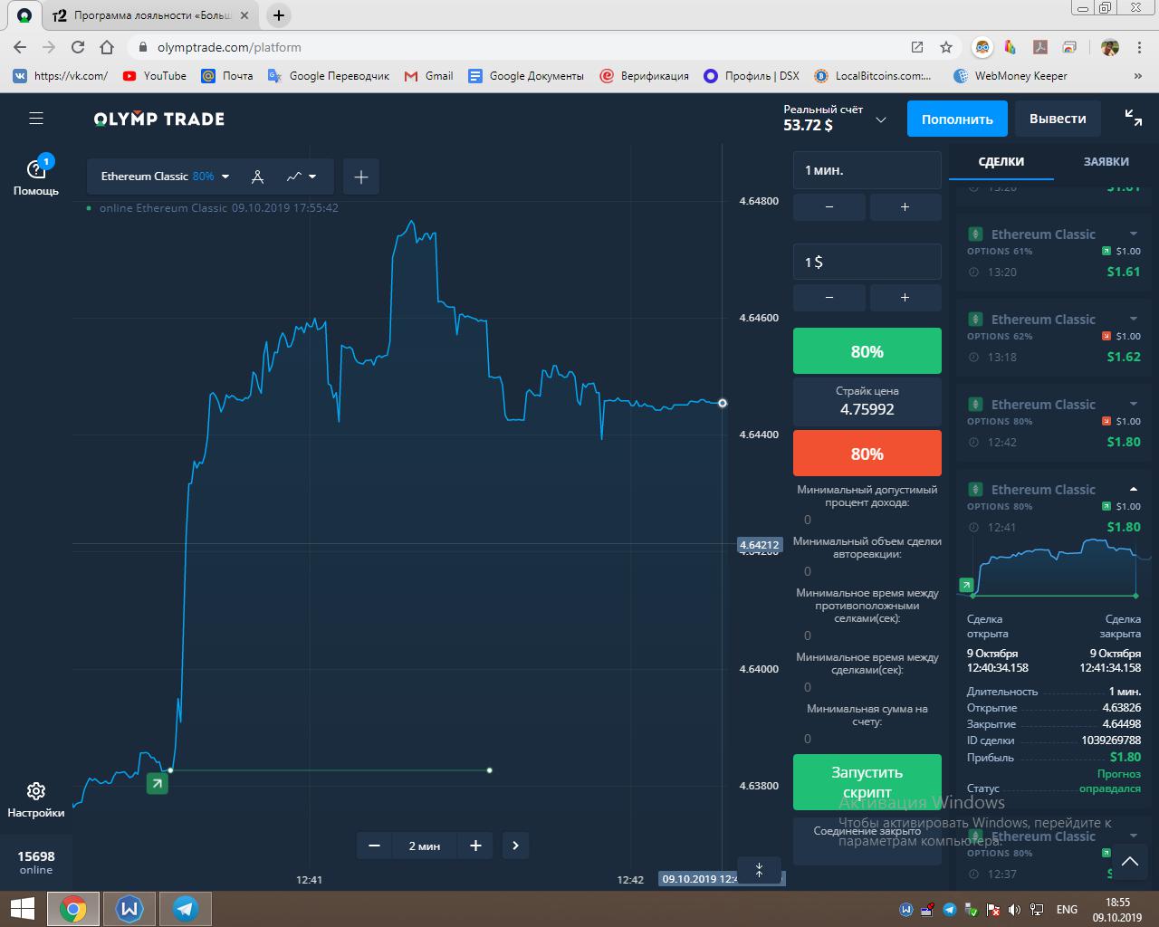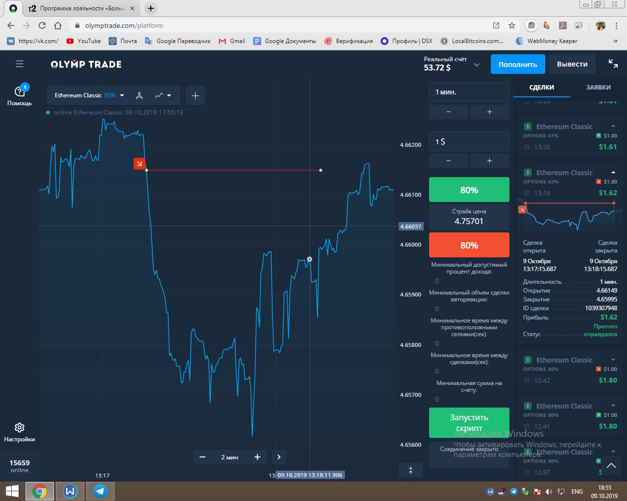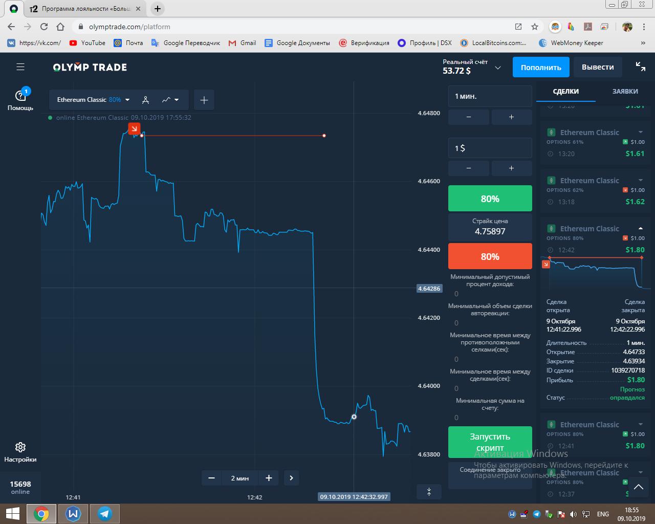 Работает всё на платформе Olymptrade.