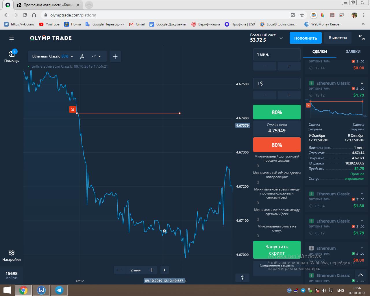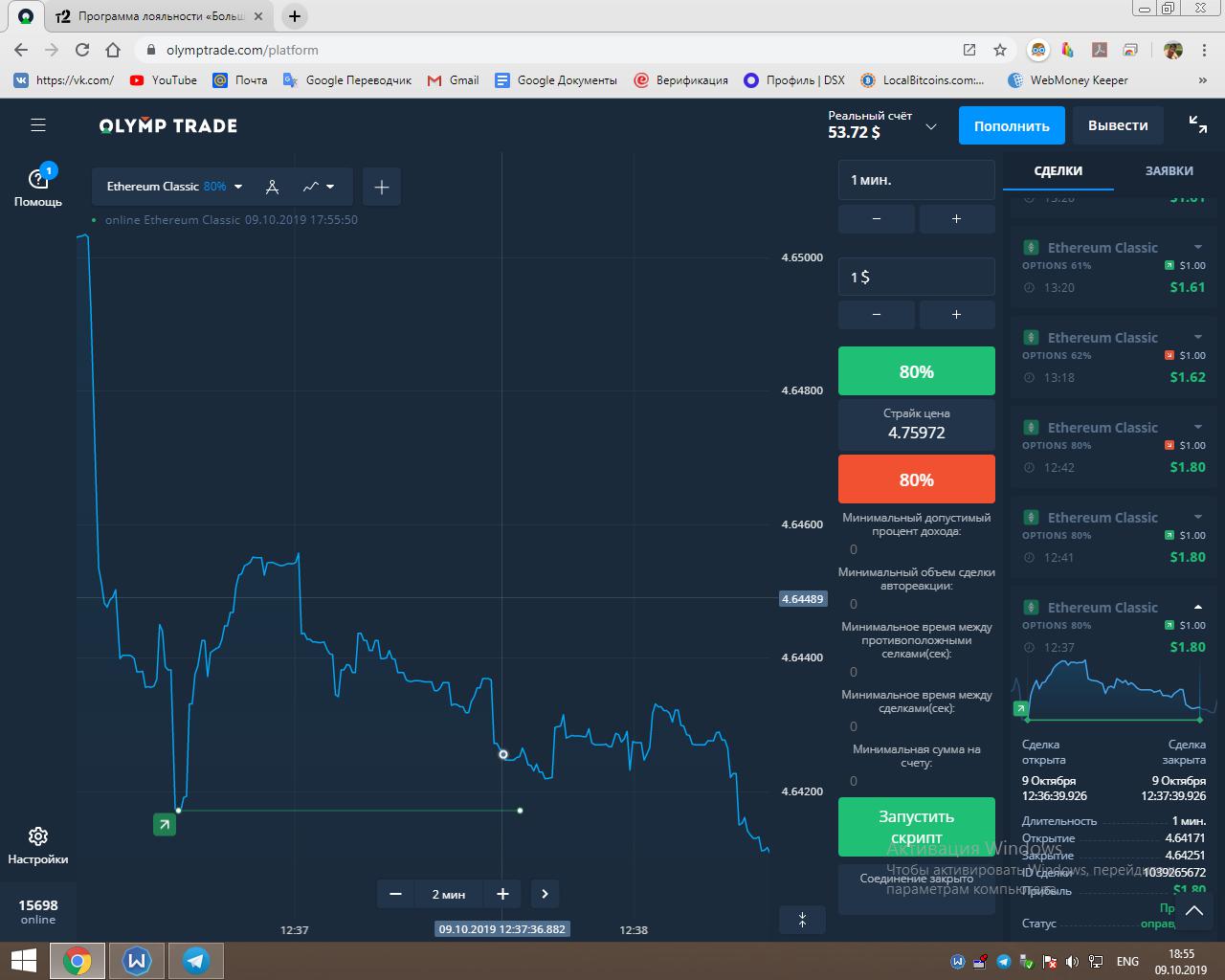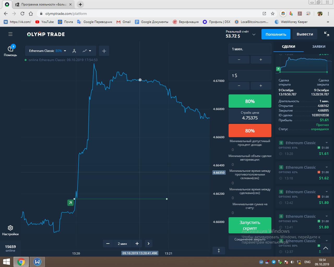 Работает всё на платформе Olymptrade.
