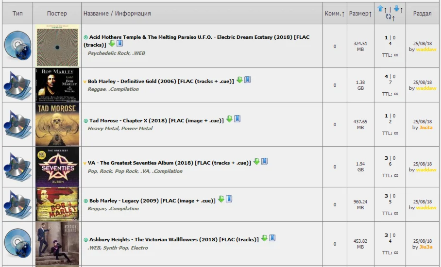 LOSSLESSCLUB.COM - Очень хороший Украинский торрент – трекер, специализирующийся на музыке в формате lossless. Основные кодеки сжатия звука FLAC и APE. Сайт переведён на пять языков. На трекере Вы найдёте музыку таких жанров, как – Сlassical, Jazz, Rhythm and Blues, Hip-Hop, Electronic, Pop, Rock, Metal, Folk итд. Бонусная система трекера и большое количество «золотых раздач», позволяет очень легко держать рейтинг. Для всех истинных любителей музыки !