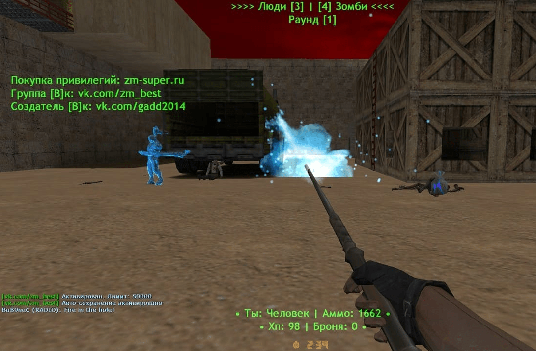 Продаётся сборка зомби сервера. Собиралась с душой около двух месяцев. Сборка имеет 7 привилегий и заточена на хорошую окупаемость? Каждая привилегия имеет свою уникальную модель. Вся реклама меняется в LANG и CFG файлах за пару секунд. К сожалению, сборку удалось протестировать пока что при наличии онлайна 20 человек. При покупке сборки, обновления - бесплатные.