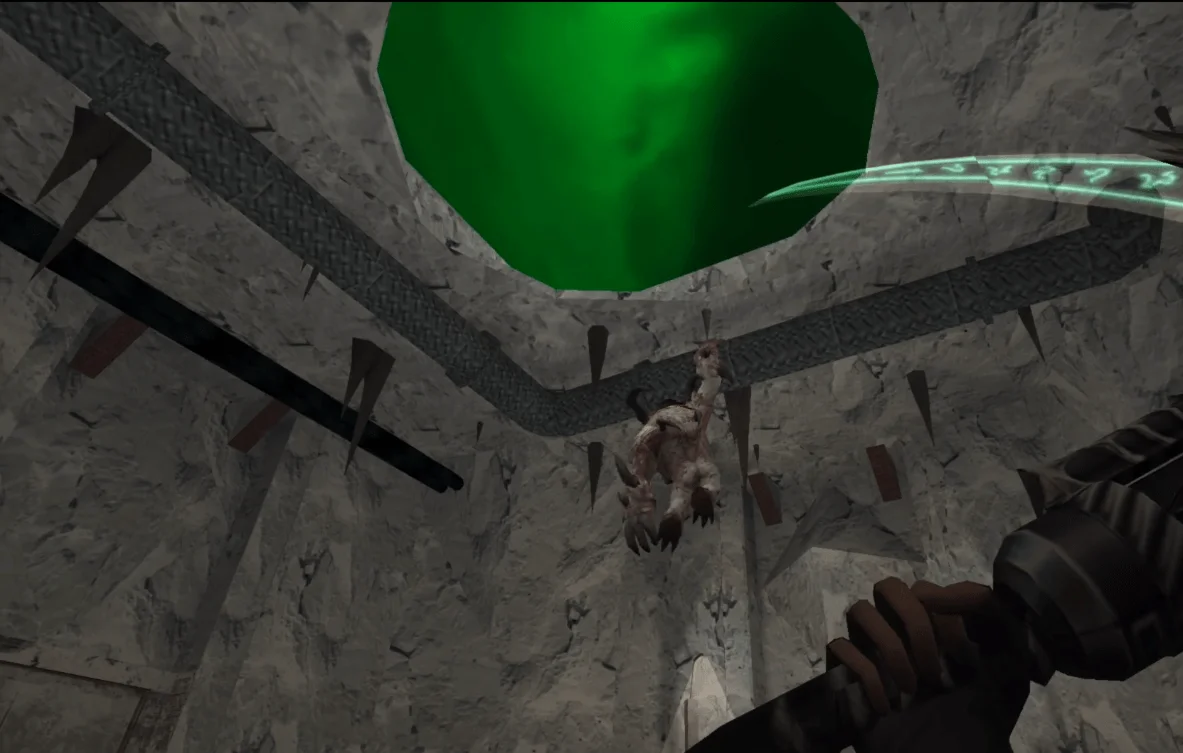 Вибрация, созданная падением, заставляет сталактиты, висящие на потолке, упасть вниз. Они представляют огромную опасность для игроков.