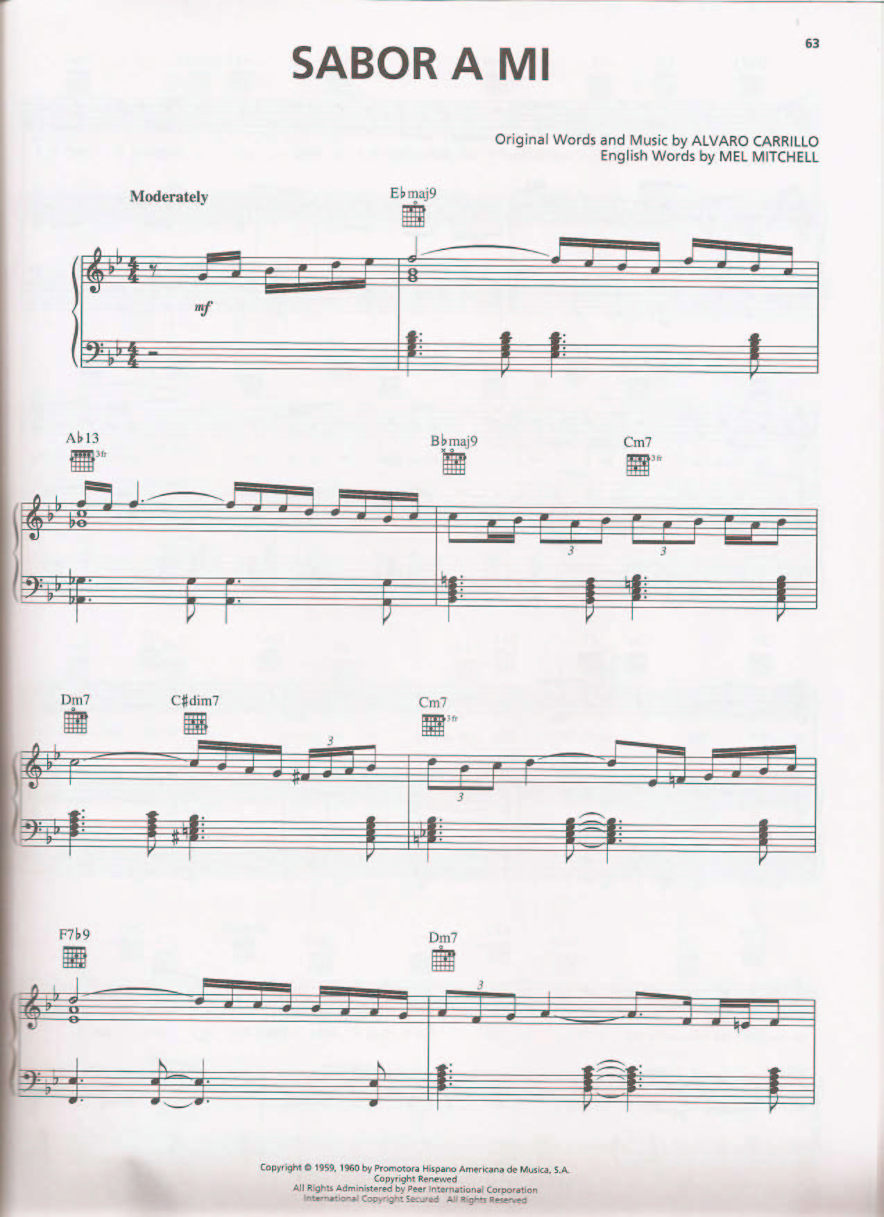 Купить "Sabor a mi" Слова и музыка А.Каррильё