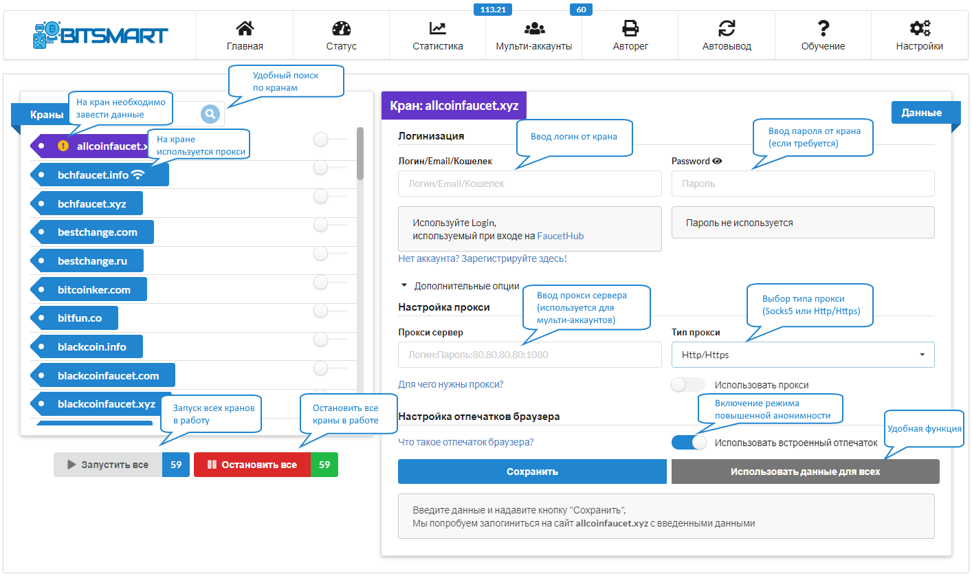 Автоматизирует криптовалютные краны, буксы, игры и казино