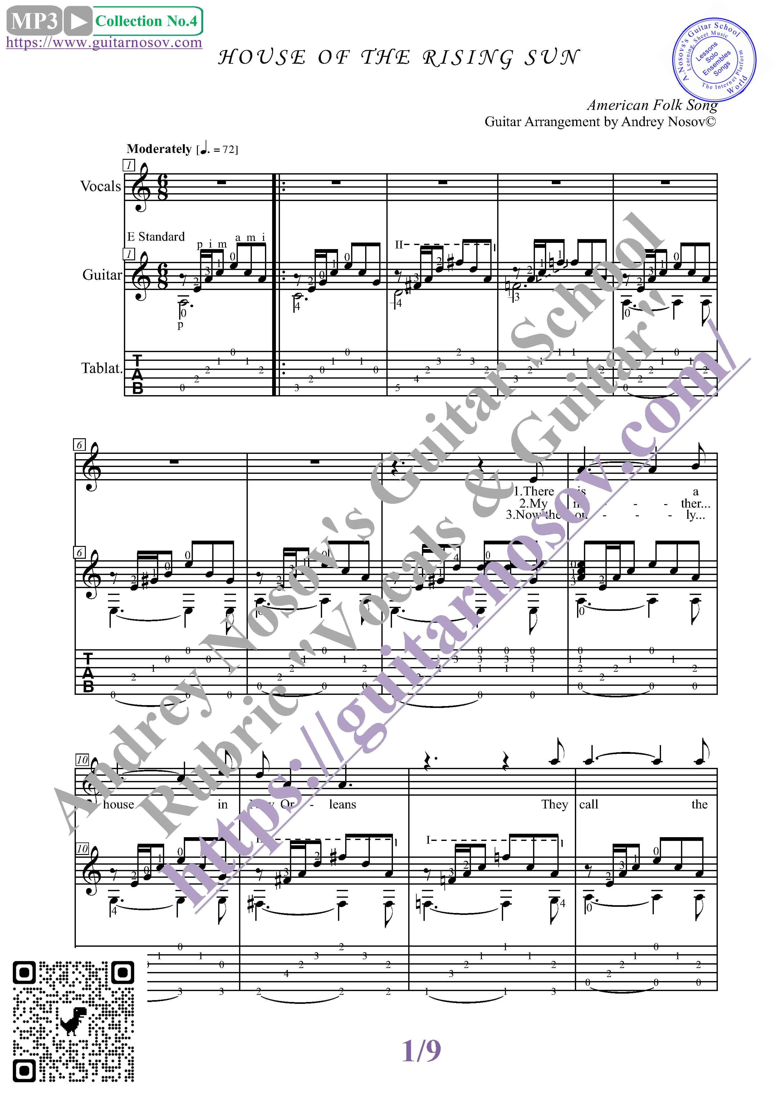 Купить Дом восходящего солнца (Вокал Гитара Ноты Табы)