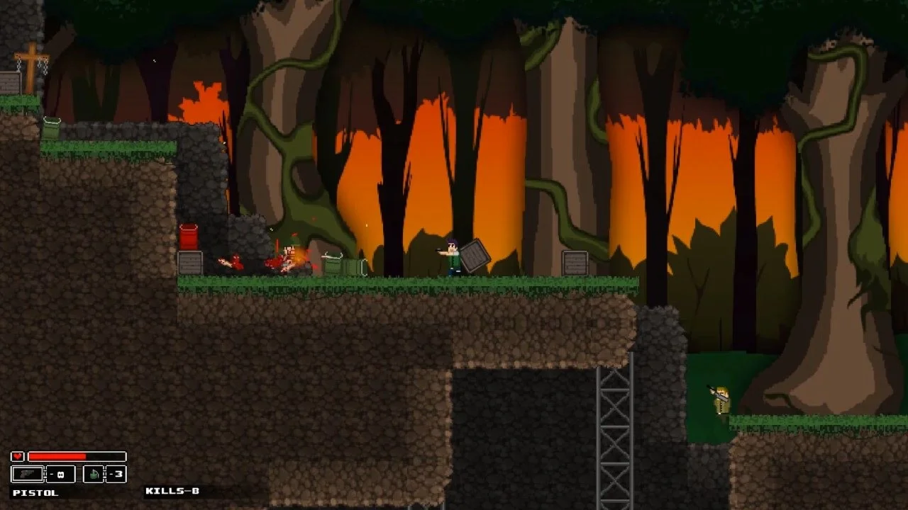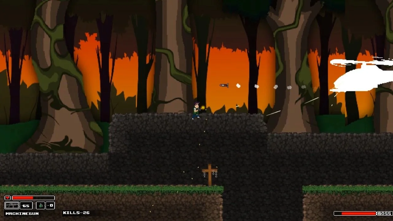 ROMGUNS - это динамичный и хардкорный платформер, экшен шутер с видом сбоку.