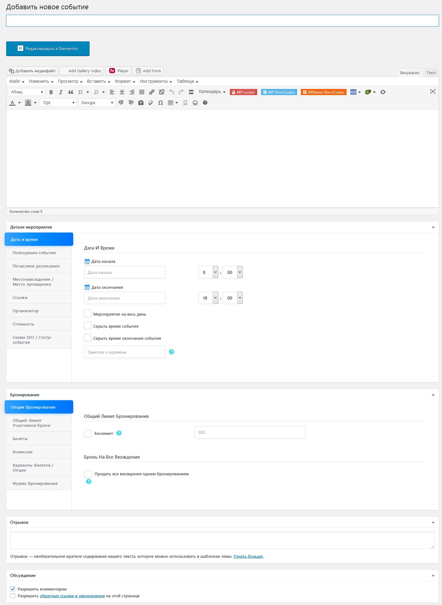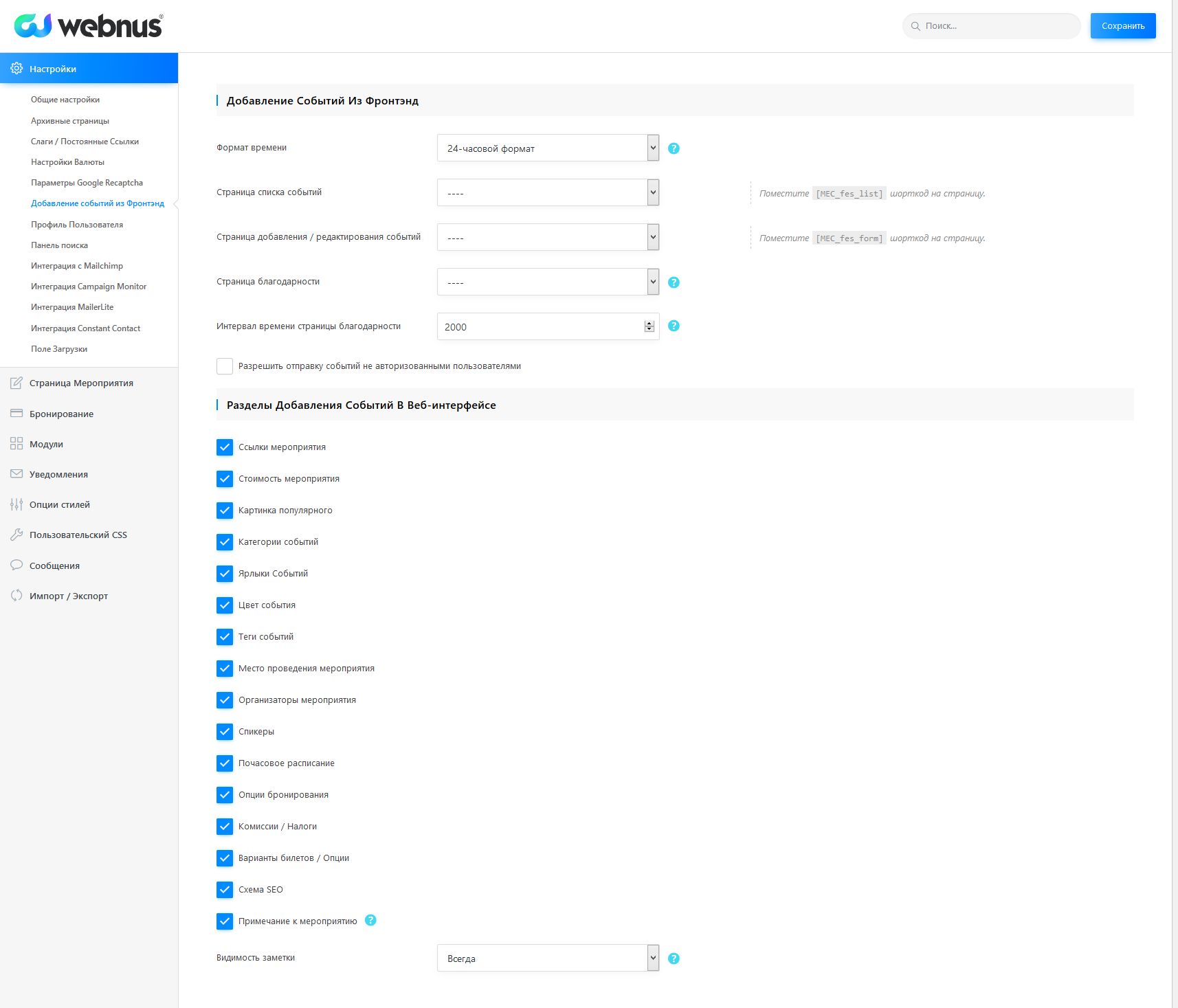 Полная руссификация (русская локализация) крутейшего плагина Календаря мероприятий с бронированием и продажей билетов Webnus Modern Events Calendar Pro 5.4.6 для WordPress