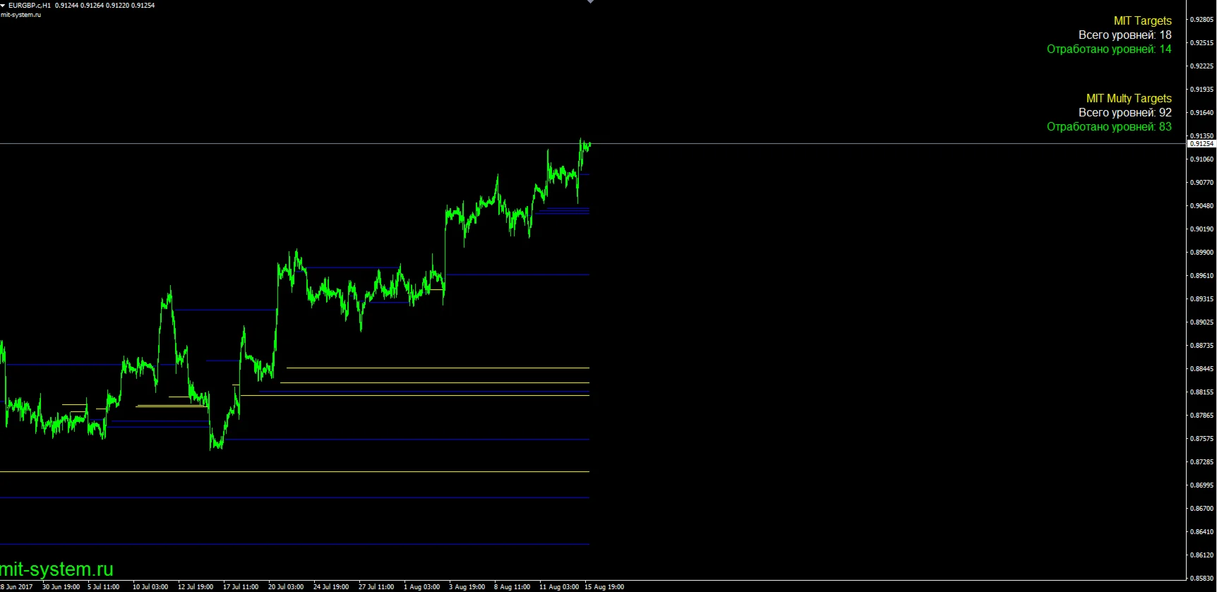 Имея знания будущей цены, необходима стратегия для правильного входа в рынок, а так же риск менеджмент, для низкорискованного достижения знаемой цены, что и предоставляет комплексный индикатор MIT System Indicator.