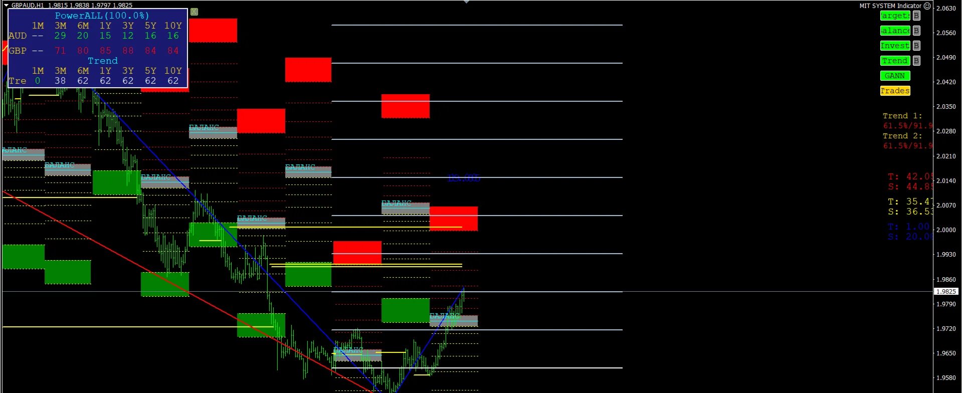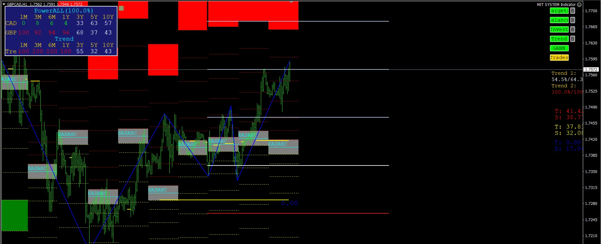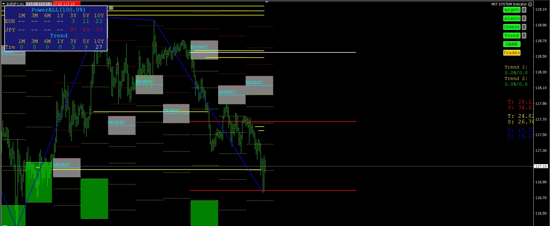 Высокоточный комплексный индикатор, состоящий из целого набора индикаторов MIT, таких как: Targets, Balance, Investment и все вариации индикаторов Trend.