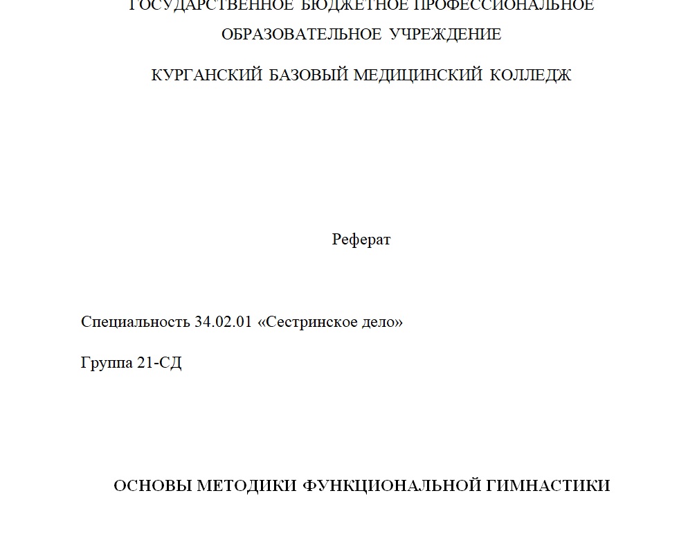 Купить РЕФЕРАТ ОСНОВЫ МЕТОДИКИ ФУНКЦИОНАЛЬНОЙ ГИМНАСТИКИ