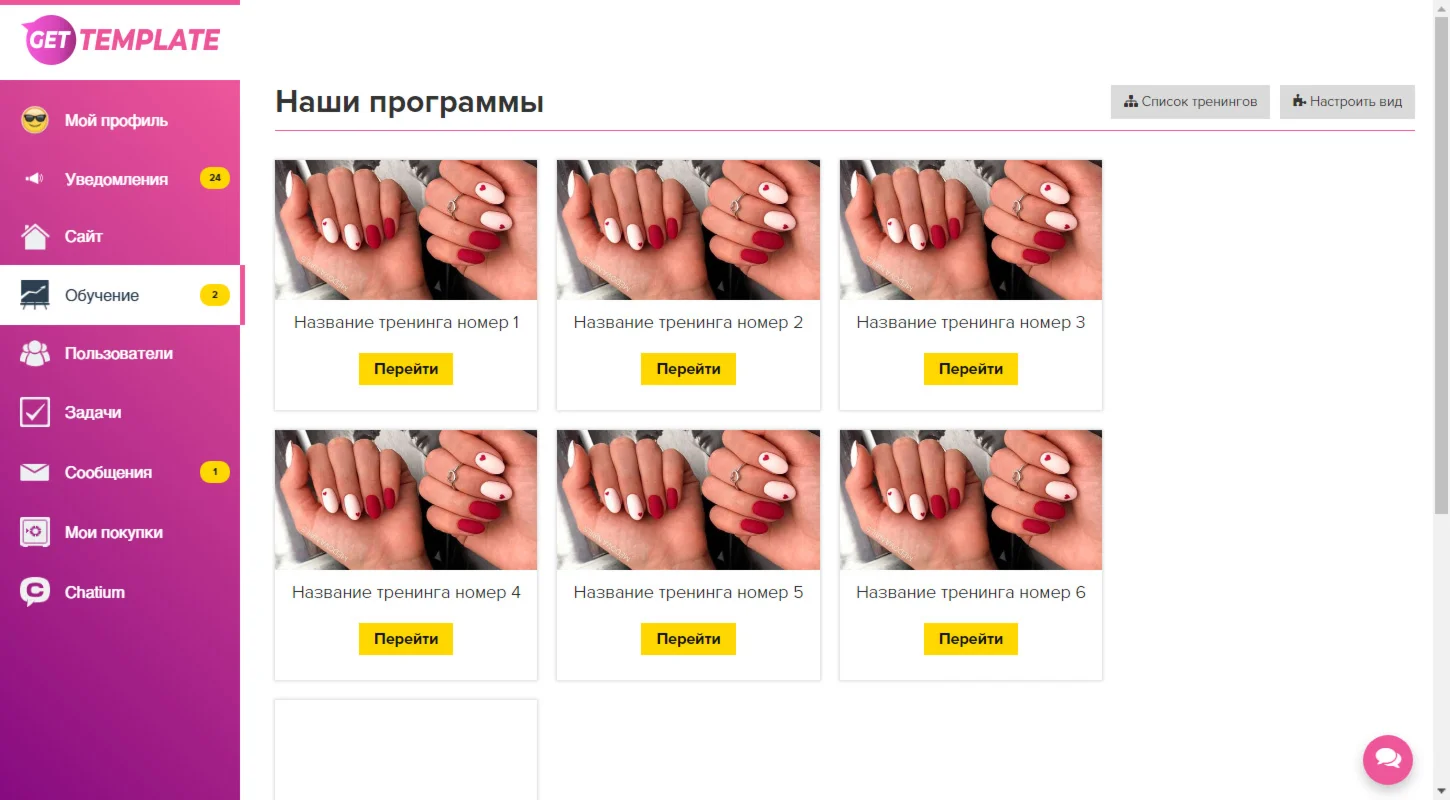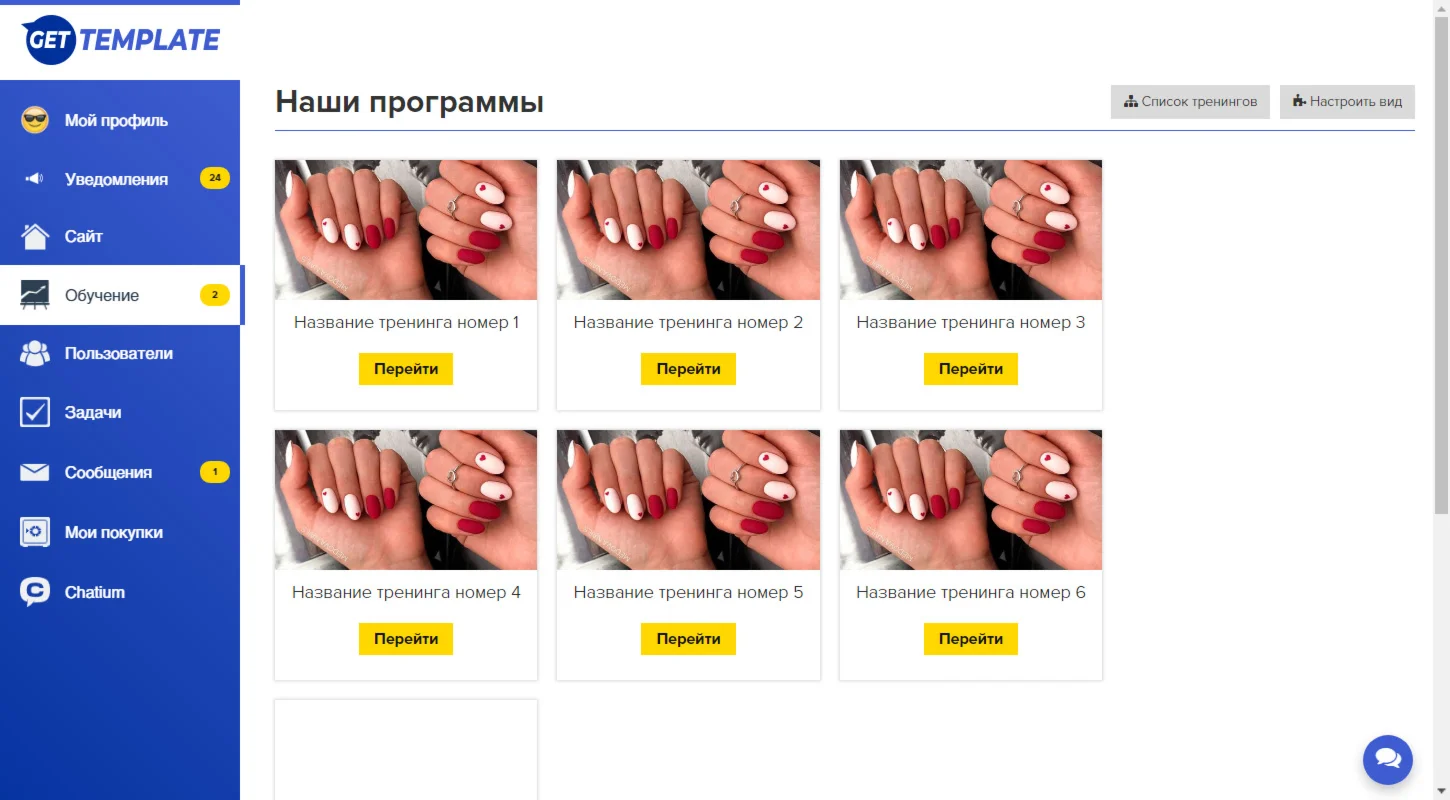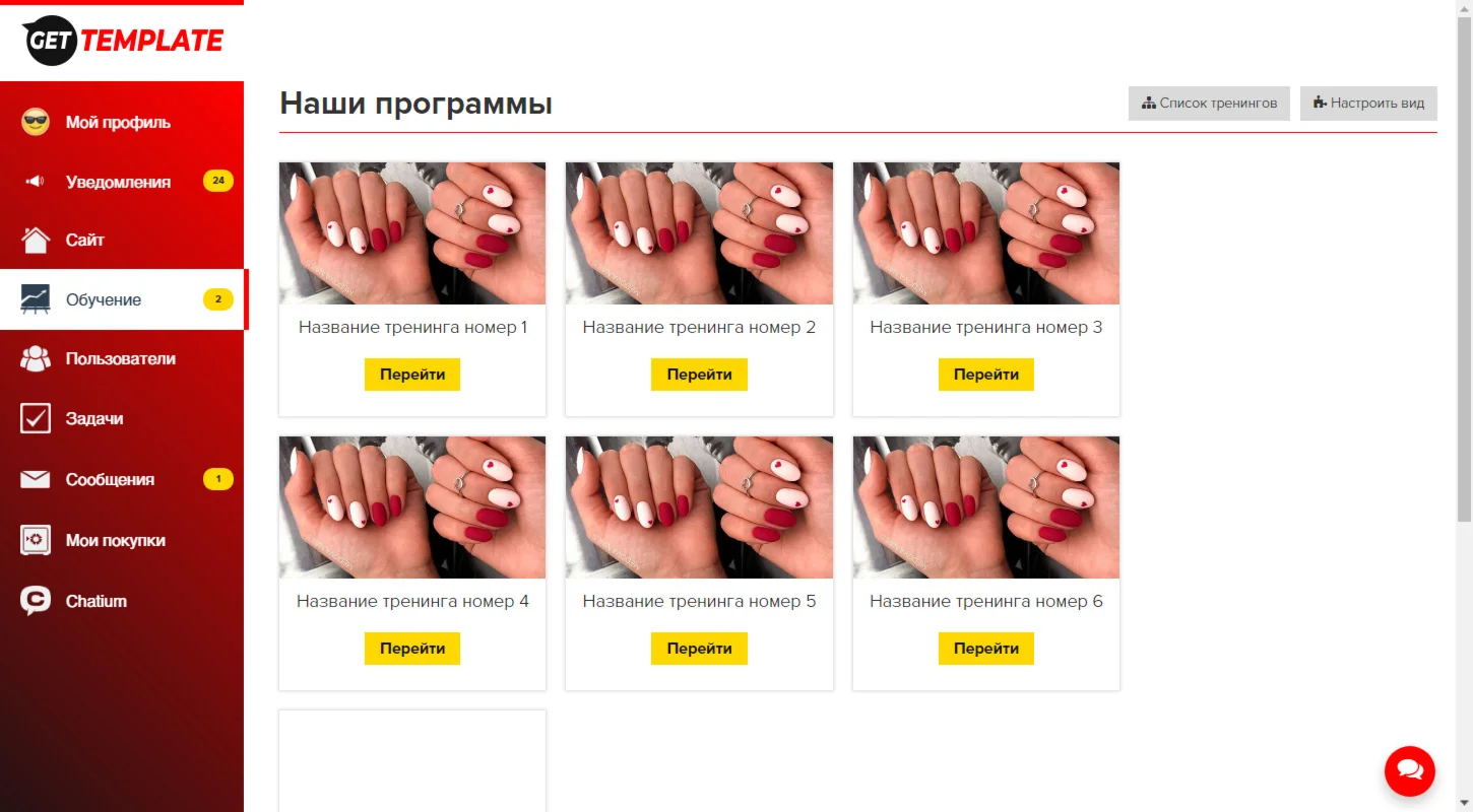 Магазин » Меню Геткурс 3.0 + Шаблон списка тренингов