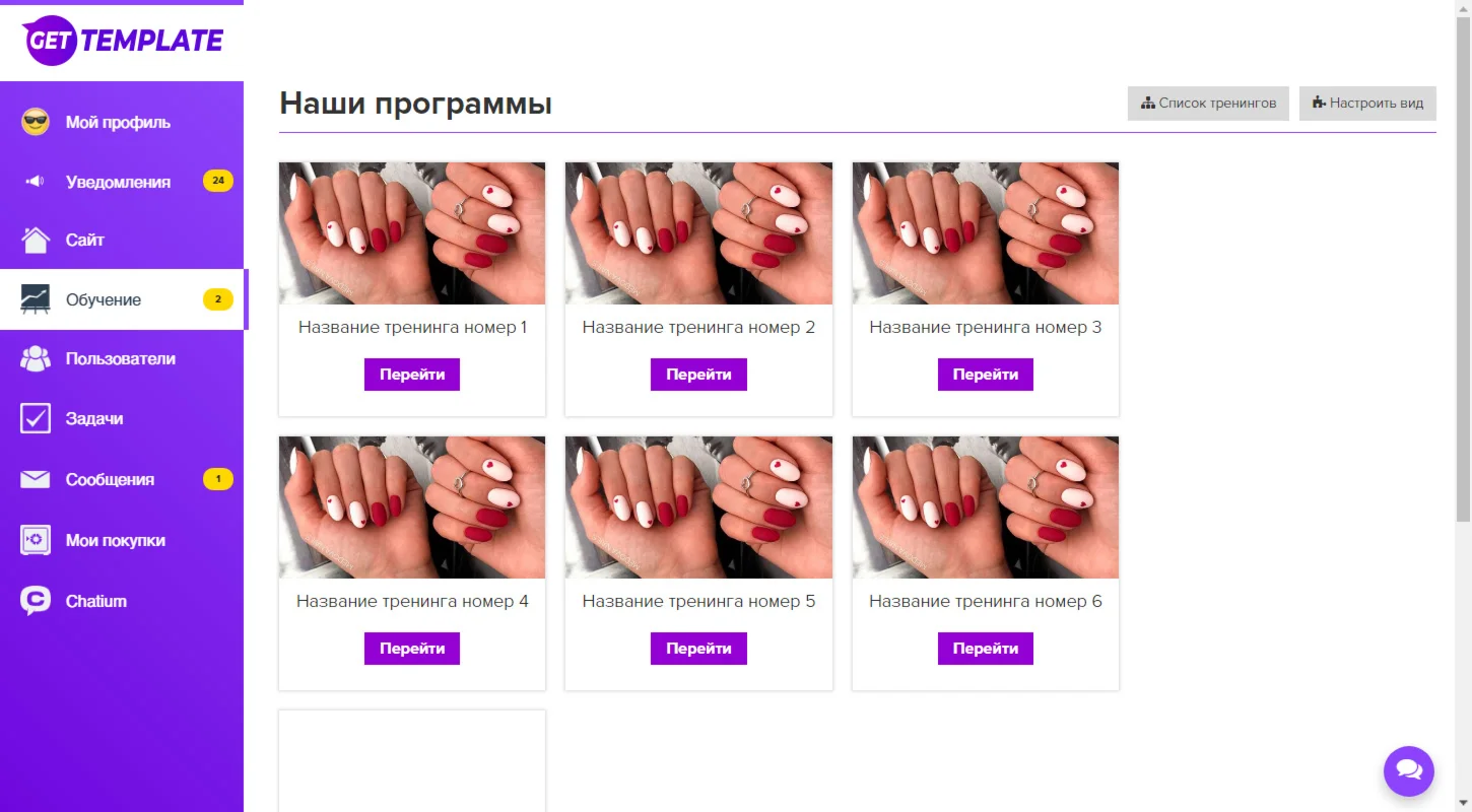 Купить Меню Геткурс 3.0 + Шаблон списка тренингов