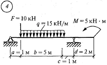 Определить опорные реакции балки на двух опорах по данным одного из вариантов, показанных на рисунке.
