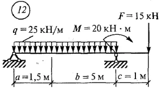 Определить опорные реакции балки на двух опорах по данным одного из вариантов, показанных на рисунке.