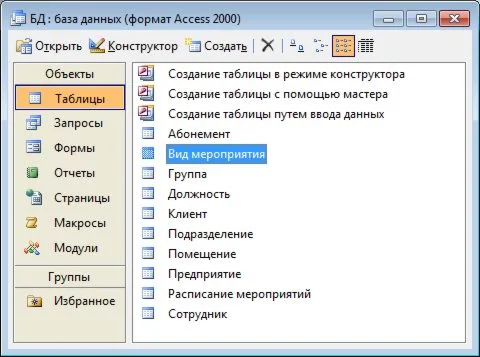 Среда разработки: Microsoft Office Access.