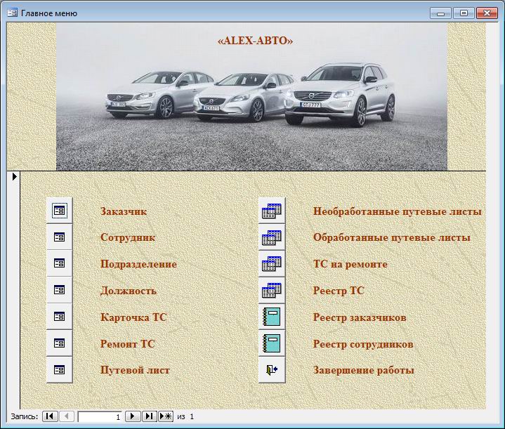 База данных "Учет путевых листов" предназначена для автоматизации деятельности автотранспортного предприятия и учета путевых листов. Позволяет обрабатывать информацию о путевых листах, ремонте транспортных средств, карточках транспортных средств сотрудниках и заказчиках.