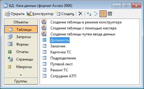 Среда разработки: Microsoft Office Access.