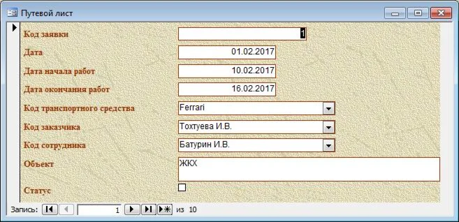 Купить База данных Учет путевых листов.mdb