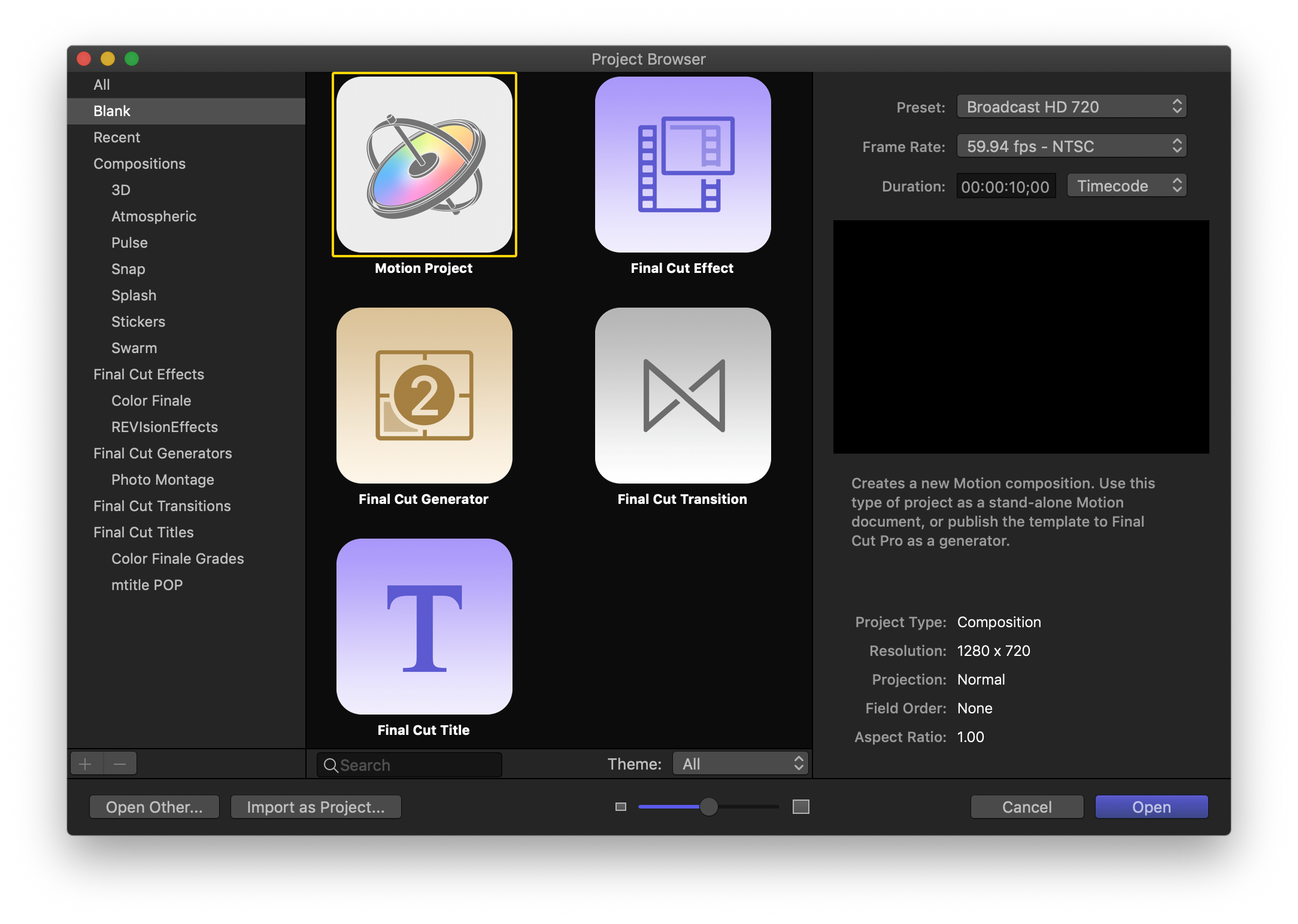 Motion используется для создания телевизионных программ, рекламных роликов, презентаций, фильмов и видеоарт. Он тесно интегрирован с Apple Final Cut Pro X и Apple Compressor.