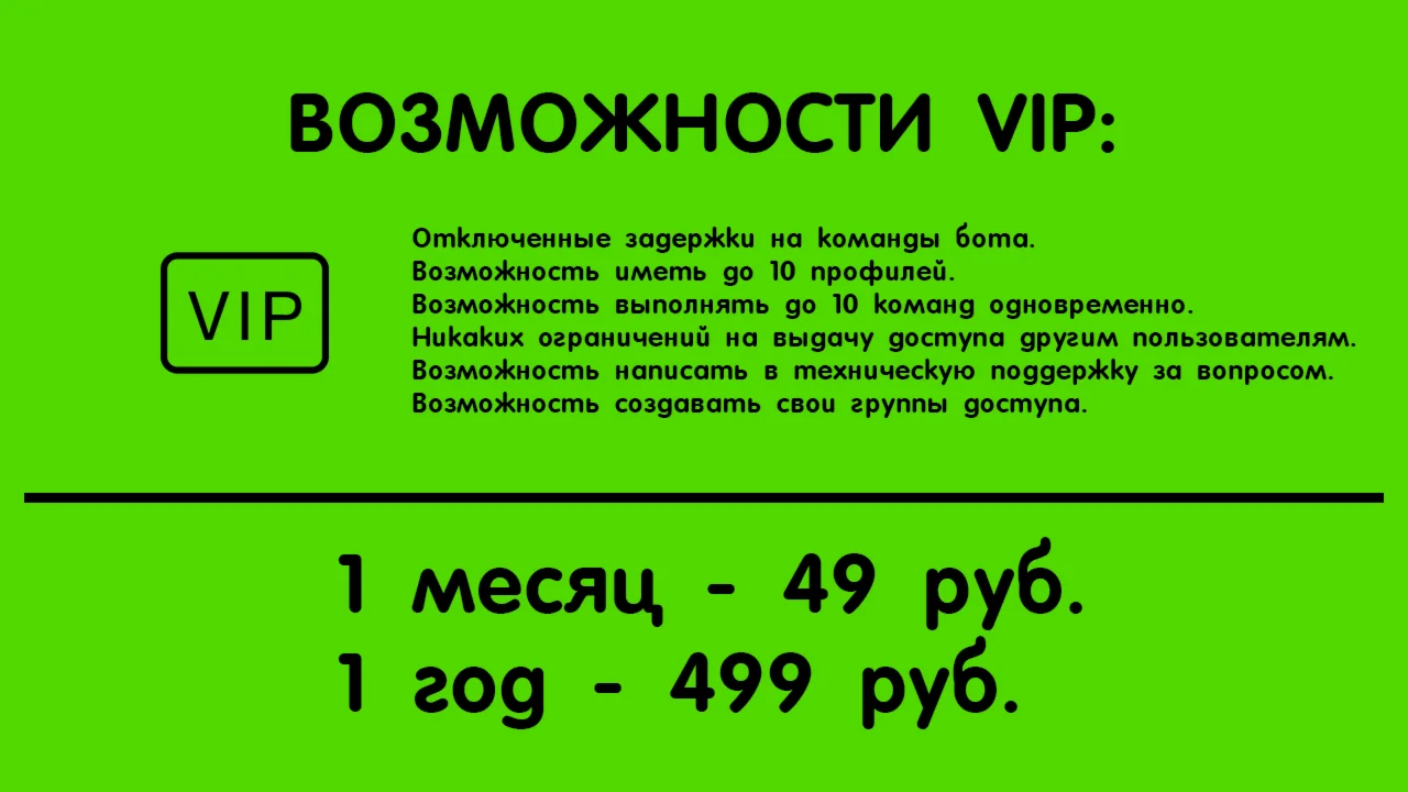 Если Вы желаете приобрести VIP на более меньший срок, ознакомьтесь с предложением на 1 месяц за 49 рублей.
