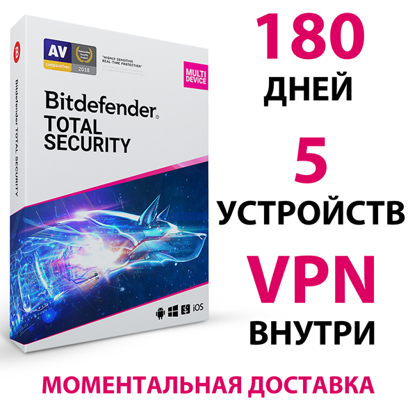 После оплаты вы моментально получаете не активированный ключ Bitdefender Total Security - 180 ДНЕЙ 5 устройств.