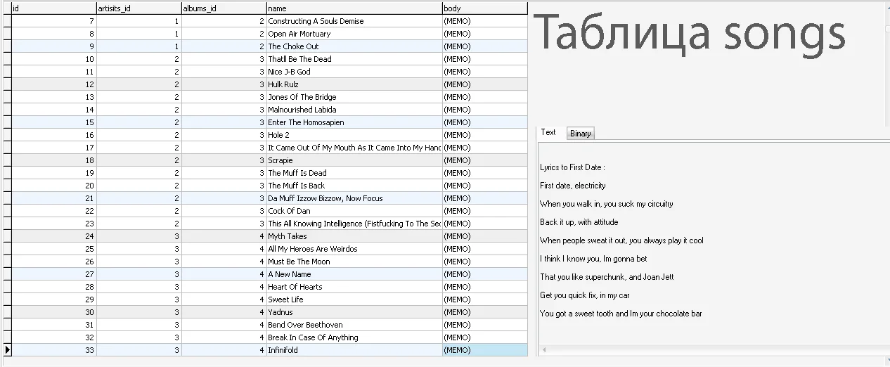 Магазин » MySQL dump базы данных текстов песен 700000 штук.