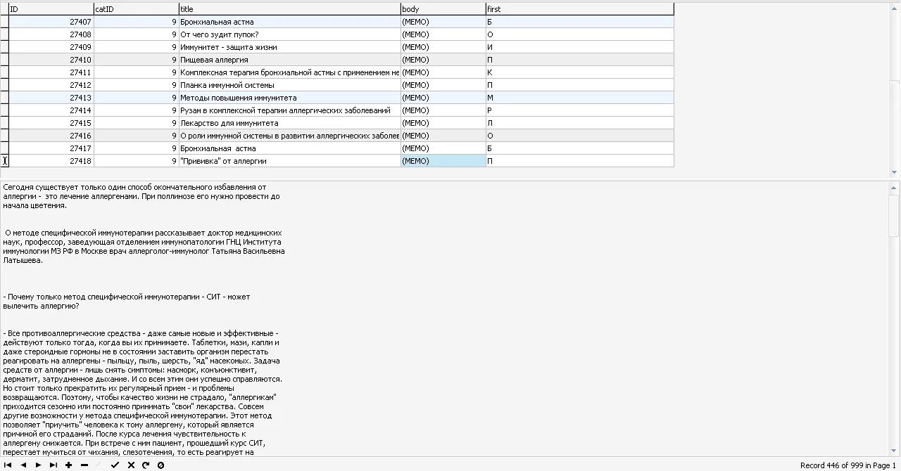 База данных медицинских статей и болезней + DLE dump