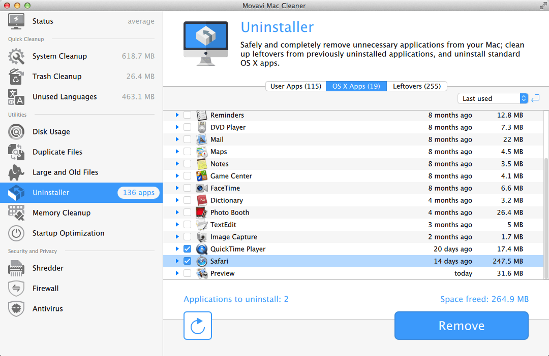 Uninstall unnecessary applications on Mac with Movavi