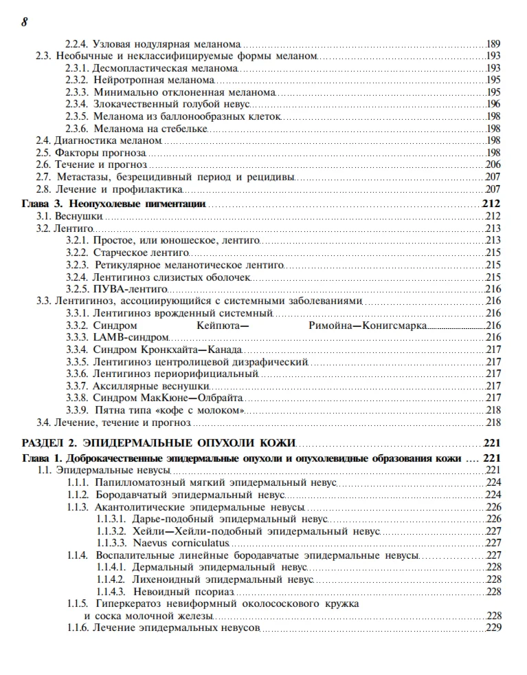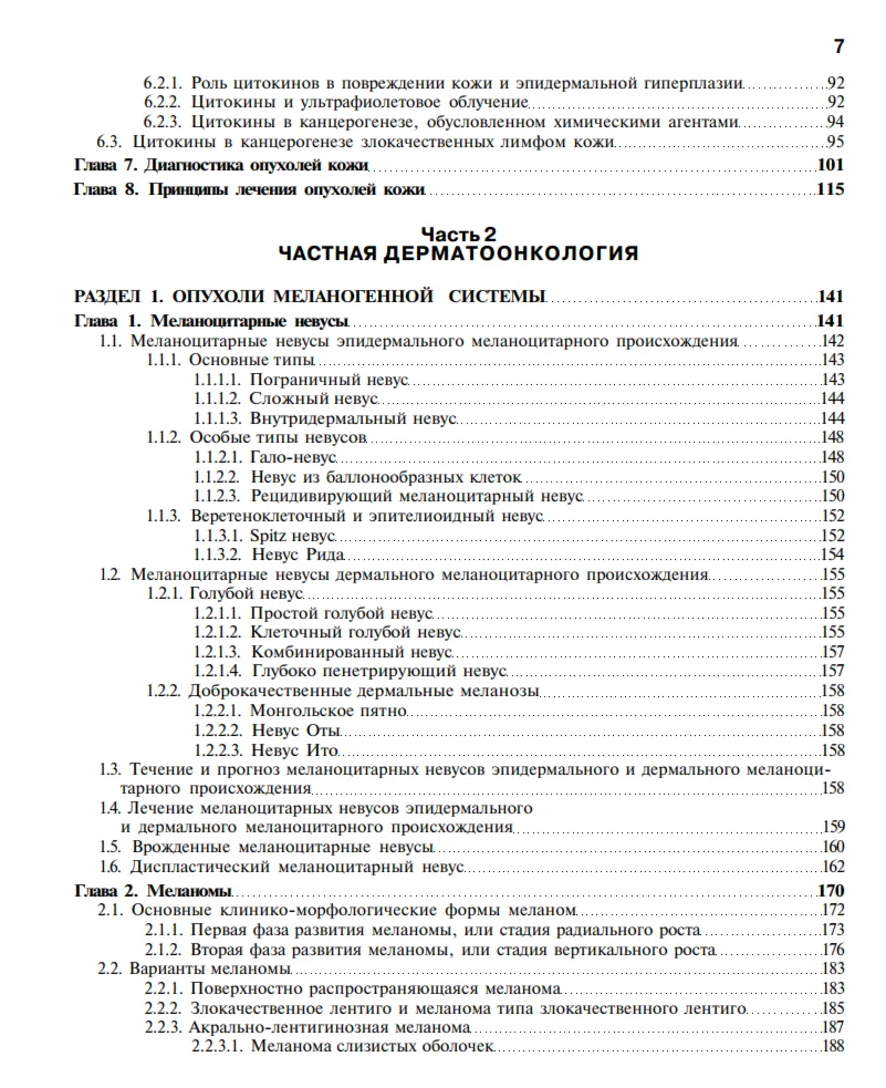 Издание состоит из предисловия, введения и двух частей — общей и частной дерматоонкологии.