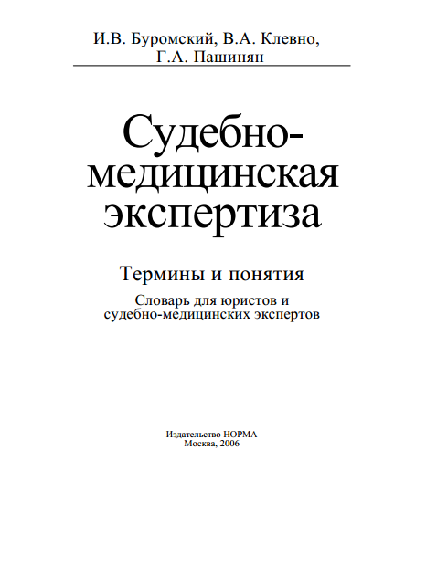 Буромский И. В. Судебно-медицинская экспертиза: Термины и понятия: