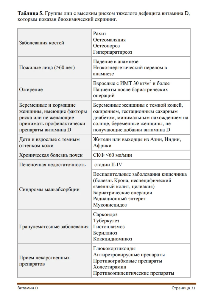 ДЕФИЦИТ ВИТАМИНА D У ВЗРОСЛЫХ: