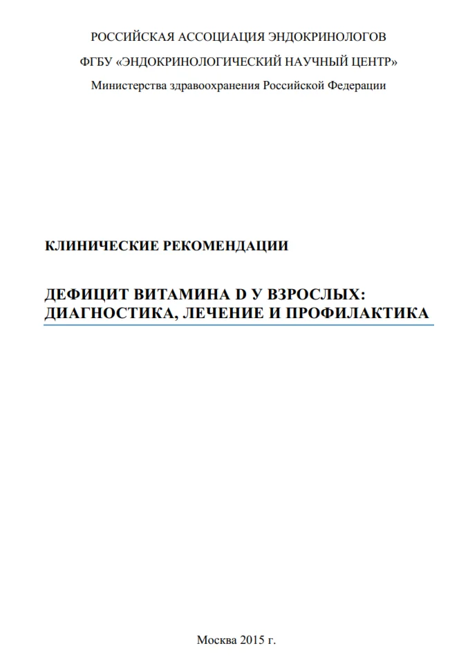 Магазин » КЛИНИЧЕСКИЕ РЕКОМЕНДАЦИИ ДЕФИЦИТ ВИТАМИНА D У ВЗРОСЛЫХ: