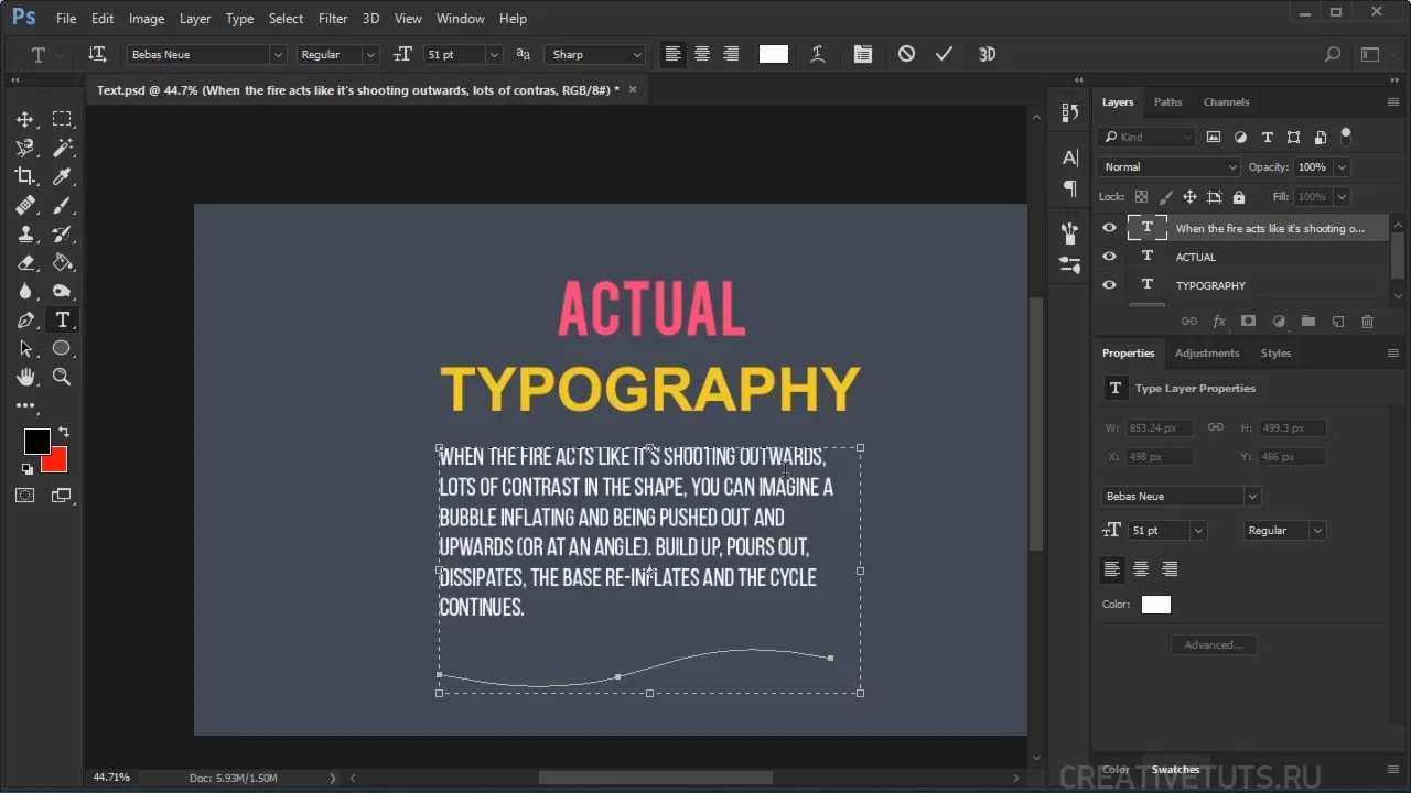 Фотошоп позволит вам достаточно широко работать с текстом. Вы сможете создавать различные текстовые эффекты, типографику, верстку и так далее. Для этого фотошоп имеет все необходимые инструменты