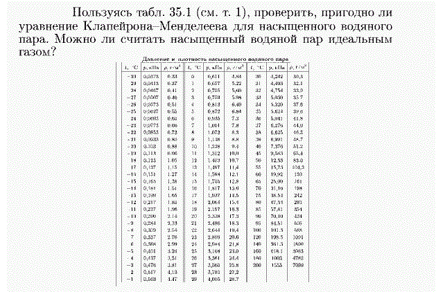 Пользуясь табл. 35.1 (см. т. 1), проверить, пригодно ли уравнение Клапейрона-Менделеева для насыщенного водяного пара. Можно ли считать насыщенный водяной пар идеальным газом?