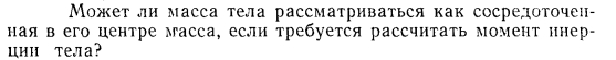 Может ли масса тела рассматриваться как сосредоточенная в его центре масса, если требуется рассчитать момент инерции тела?