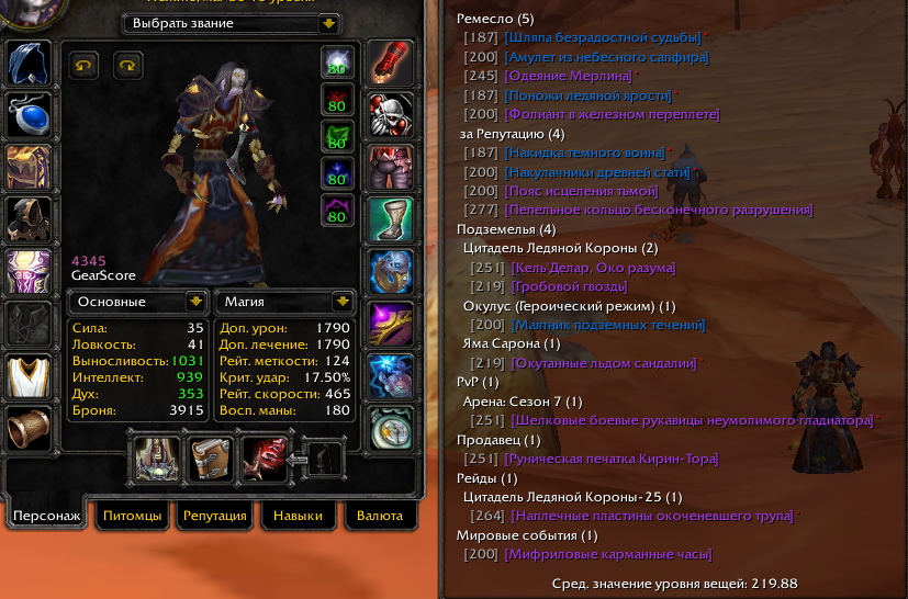 Профессии: Алхимия 450, Травничество 450, Кулинария 450, Рыбная ловля 450