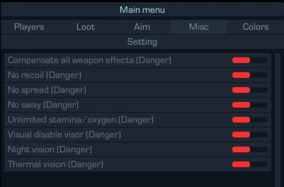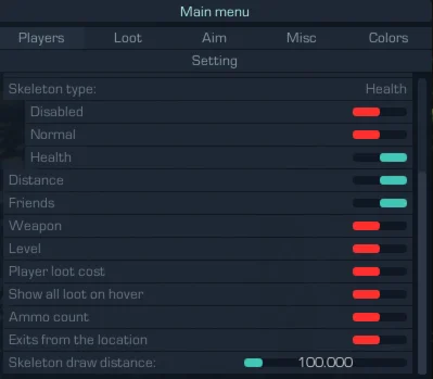 Представляю вашему вниманию качественный приватный чит для игры EFT от надёжной команды разработчиков Crooked Arms. Программисты отличаются своей стабильностью, регулярно выпускают доработки своих продуктов и своевременно обновляют читы. Программа включили в себе все наработки прошлых лет, современный обход античита и уникальный способ защиты от блокировки аккаунтов. В софт включили всевозможные функции, которые позволят вам качественно доминировать и побеждать в игре.