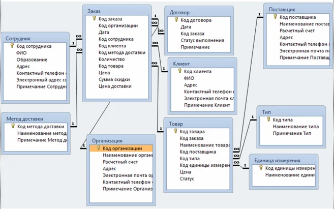 Разрабатываемая информационная система может быть использована для обработки следующей информации: информация о товарах; информация о типе товара; информация о поставщиках; информация о клиентах; информация о организации; информация о сотрудниках; информация о методе доставки; информация о заказах; информация о договорах.