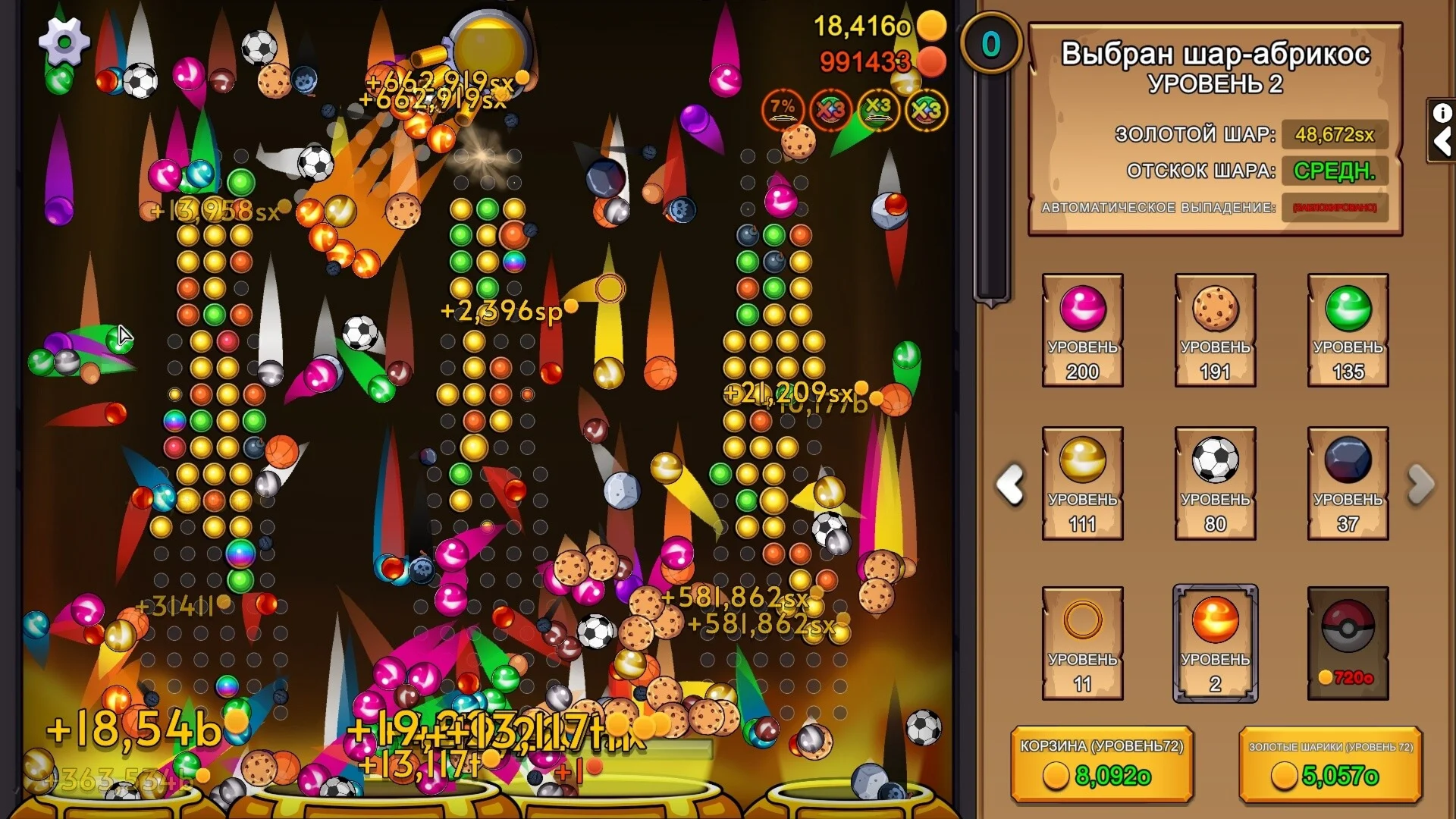 PegIdle — это инкрементальная игра в стиле Пачинко! Прицеливайтесь и стреляйте шарами, чтобы выбить все колышки на доске. Получайте золото, выбивая золотые колышки или попадая шарами в движущуюся корзину. Тратьте золото на новые шары и улучшения для них!