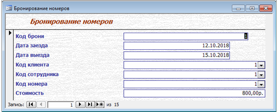 Купить База данных Гостиница Access