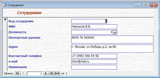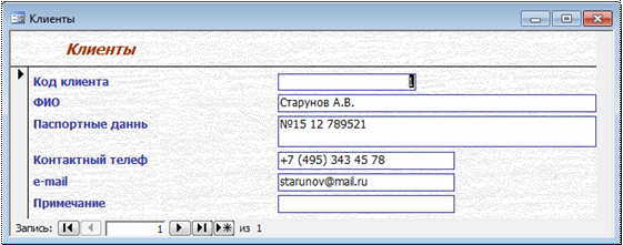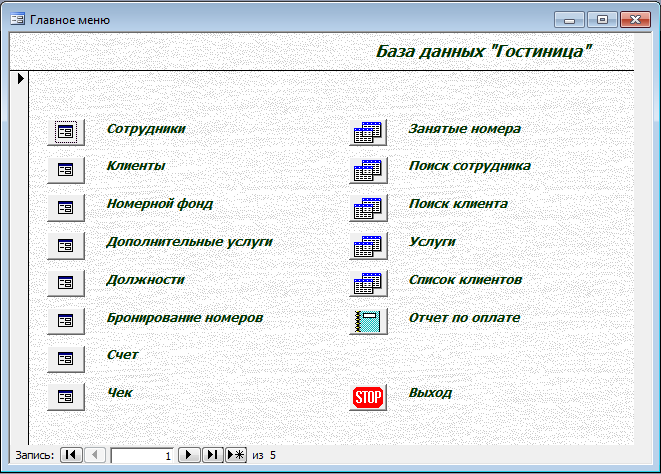 Магазин » База данных Гостиница Access