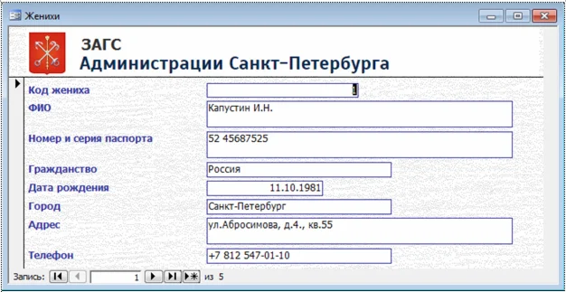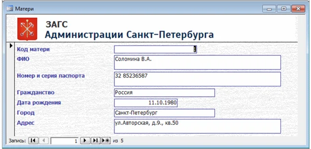 Купить База данных ЗАГС Access