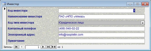 Магазин » База данных Инвестиции.mdb