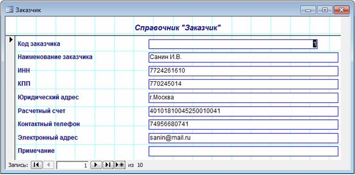 Среда разработки: Microsoft Office Access.