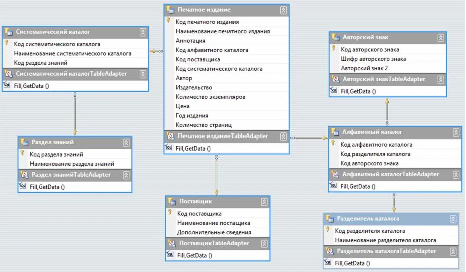 Информационная система "Домашняя библиотека" содержит следующие таблицы: разделитель каталога; алфавитный каталог; раздел знаний; систематический каталог; авторский знак; поставщик; печатное издание.