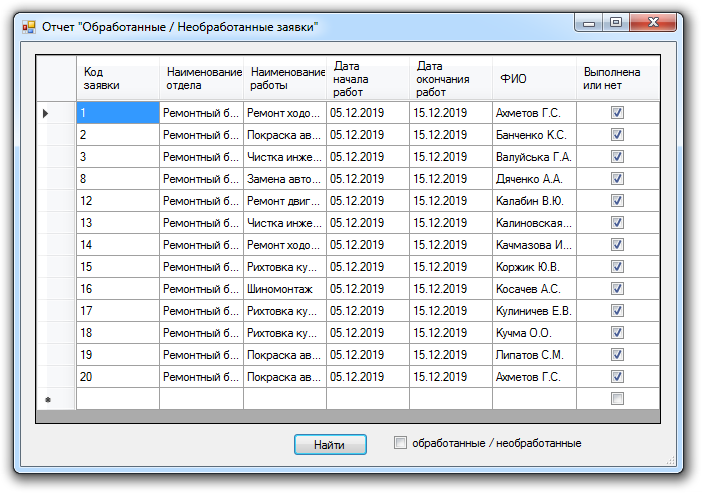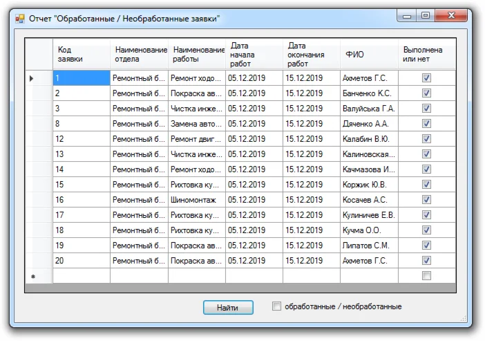 Магазин » База данных Автомастерская C#