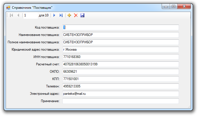 База данных Учет деталей C#