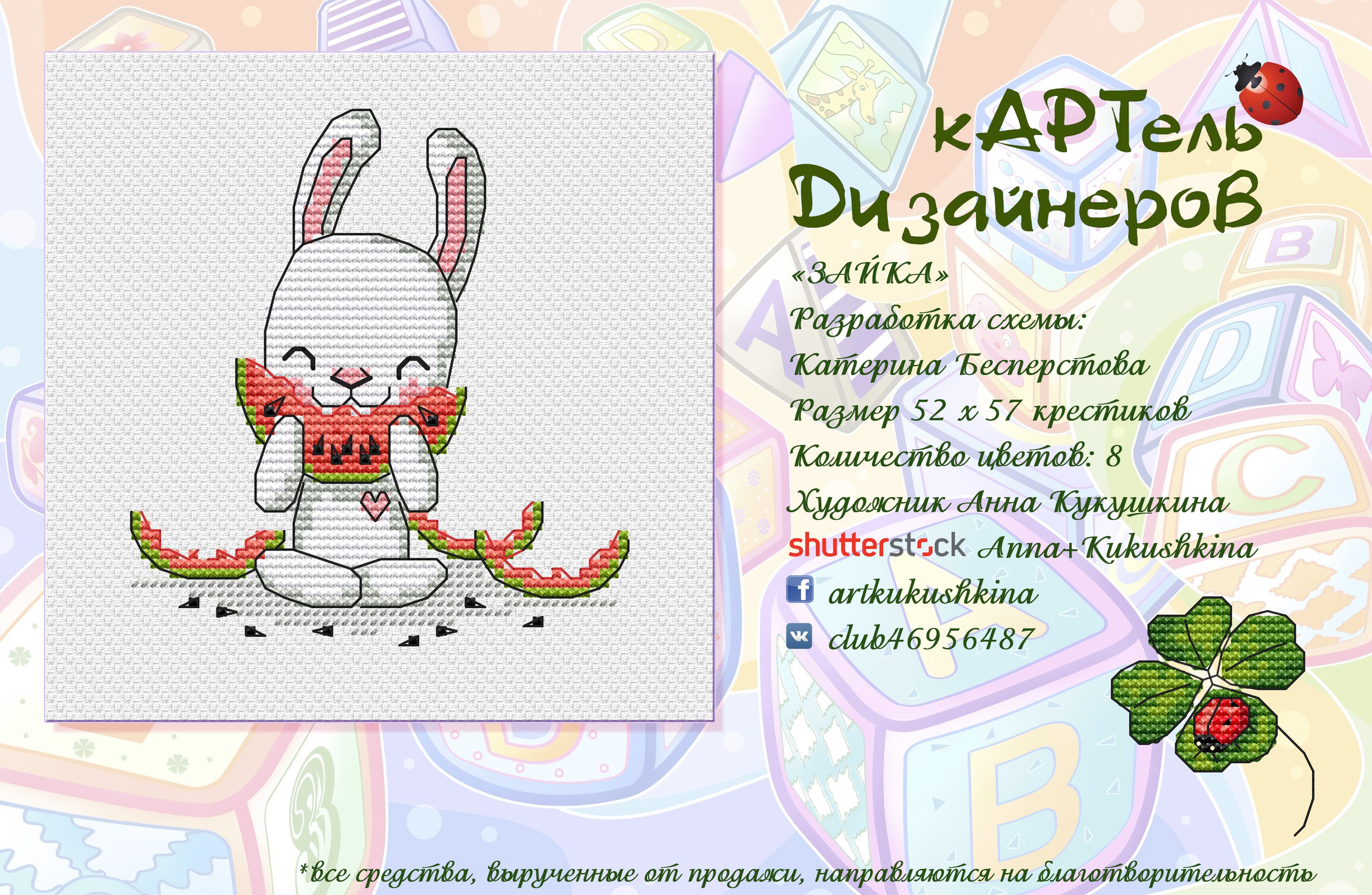 Магазин » Эксклюзив. схема для вышивки крестом Зайка с арбузом