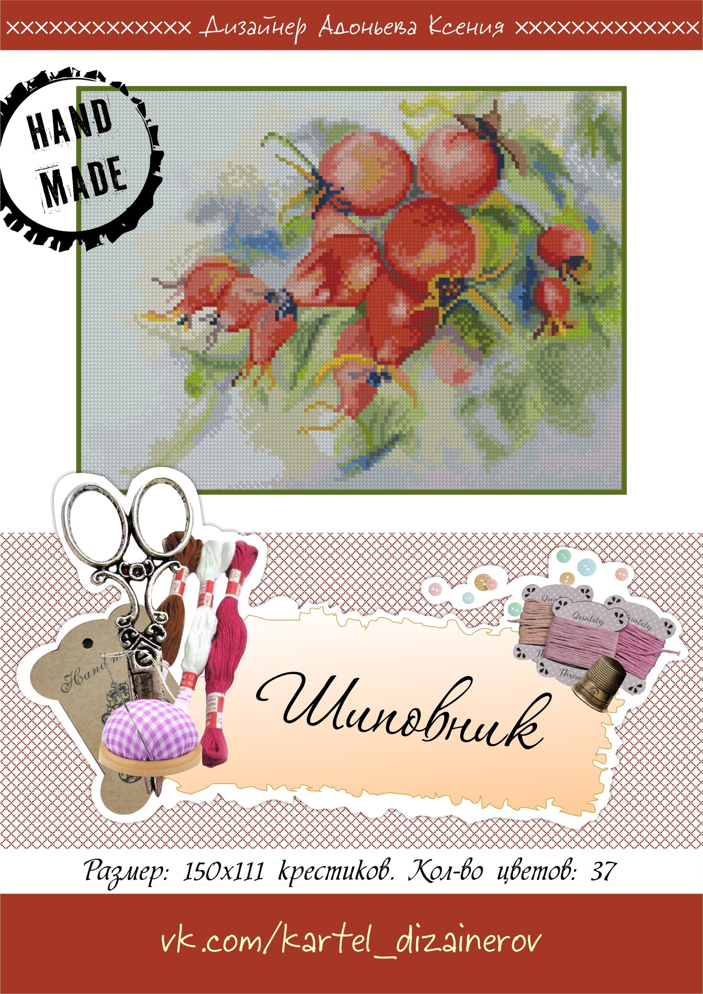 Размер 150х111 крестиков, 37 цветов